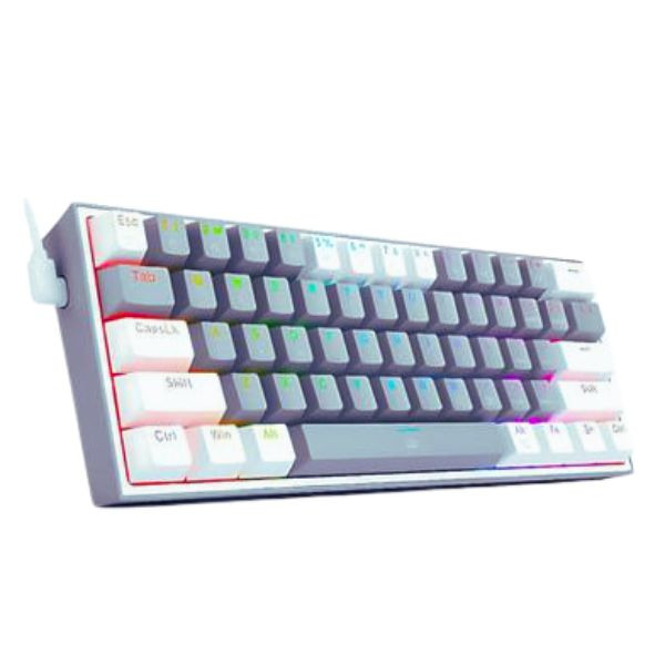 The **Redragon K617 Fizz Gray White Red Switch Mechanical Keyboard** is a compact, 60% layout keyboard designed for gamers and minimalists alike. It offers a sleek and modern aesthetic with its gray and white color scheme, making it a stylish addition to any setup. Equipped with Redragon's durable red mechanical switches, this keyboard ensures fast, responsive keystrokes ideal for gaming and typing. The K617 Fizz is also fully customizable with RGB lighting, allowing users to create personalized lighting effects. With its compact design, this keyboard saves desk space without compromising on performance, making it perfect for both gaming and daily use.